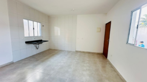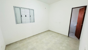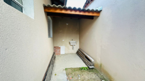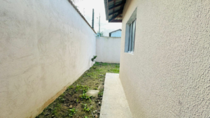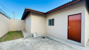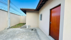 Casa da esquina: é composta por 2 dormitórios, sendo uma suíte, wc social, área de serviço, a sala e a cozinha são integradas, possui amplo quintal que poderá ser usado para instalação de piscina juntamente com uma área gourmet, ou mesmo manter o espaço para jardim ou vagas.