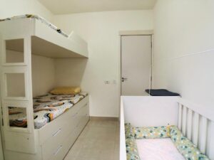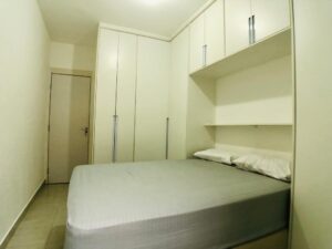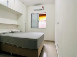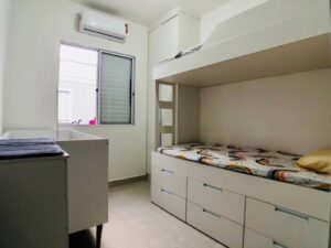 Dormitórios com camas, armários e gaveteiros em marcenaria e Ar condicionado.